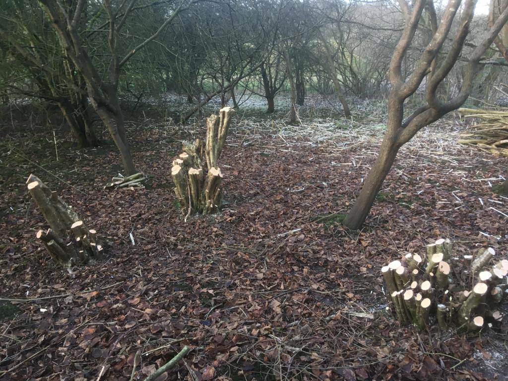 We then decided to go and check up on the coppice project I started in January to see how progress was going. I started 4 different coppice sections this year. The first was 3 old growth stools of hazel that had overgrown and needed cutting right back to get them back into rotation. This was done on the 1st of January. These plants grew very very slowly to start off in the year and I was worried that I had killed them despite having cut them when the plants were dormant. However I was happy to see today I had shoots that were a good 2ft tall or so from the stumps and up to 3 ft in some places. I cleared away the Himalayan bolsum which had sprouted around the stumps due to the increase of light and threatened to swamp the stools.