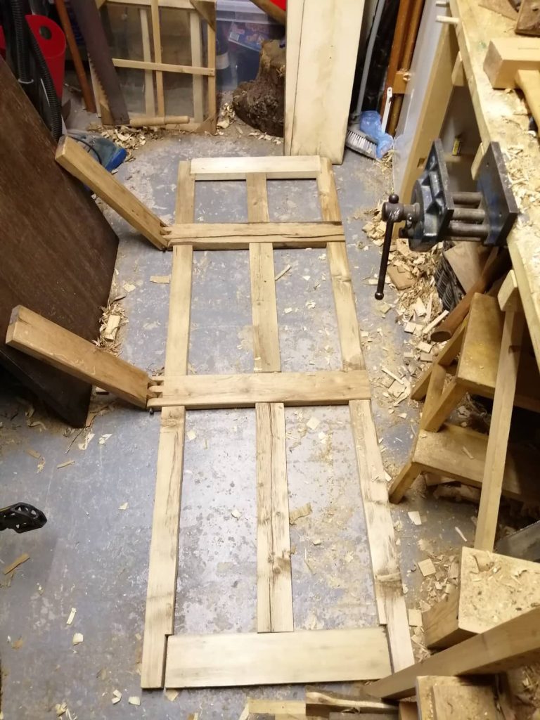 Today is the twelfth of December. Today I finished a 2 week long project. The cabin door. I have been wanting to do this for a good long while and am rather excited now that it is finished. The project was done at my parents house in the workshop because I wanted the door to be well made and good quality and this was easiest to do with the full workshop of tools and vices. So the story begins on a rather wet sleety afternoon in the workshop.