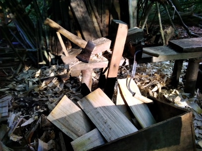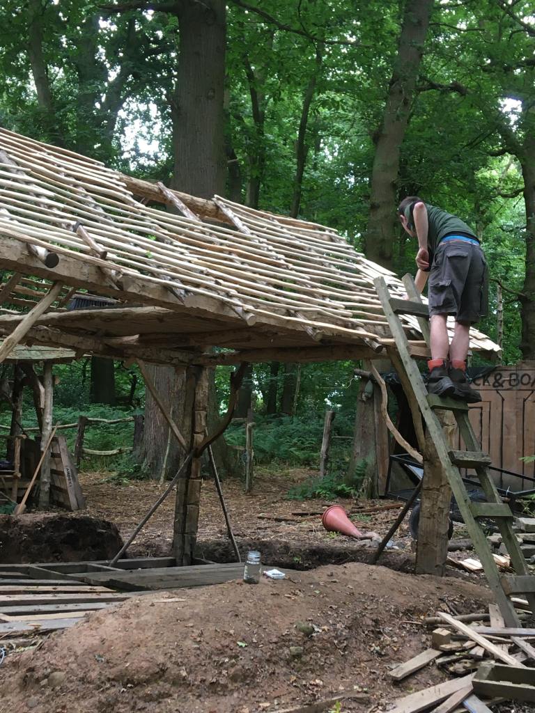1st of January. Hazel coppicing day. Let the year begin.The frame looks all good down here on the ground.IT is a rafter peeling and plank making kind of day.Just raised the frame.Garden being planted up.I love how I saw this frame as trees standing in the woods and now through back breaking labour I have a timber frame that I am very very proud of.